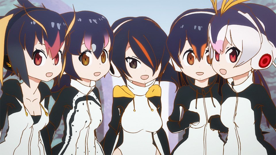 Today's blog post will be about Friends from the show Kemono Friends. This post may have one or two spoilers, but it's mainly just about what a Friend is. Now then, what are Friends? To start with, they are the main focus of the show. Friends are humanoid creatures that used to be animals. Because of this, a lot of them still keep their animal characteristics. This is why most of them have tails or claws and such. However, they also have the ability to speak. Since they are human-like now, they do have the normal human ears and noses and such. But, a lot of them will also have their animal-like ears in their hair, even though they have the human-like ears. They keep their animal traits, too. For example, a Prairie Dog Friend will still want to dig, and a bird Friend will still be able to fly. Oddly enough, the fur or scales that was on the animal before it became a Friend seems to turn into clothes for them after they turn into a Friend. This can be seen with all of the Friends, since they all wear clothes that resemble the fur, scales, or sometimes the skin they would've had as an animal. For another example of what a Friend is and what they look like, I will include a picture on here of some of the Penguin Friends. Enjoy!
